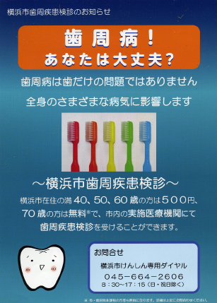 横浜市歯周疾患健診のお知らせ ⇒ こちらから | |